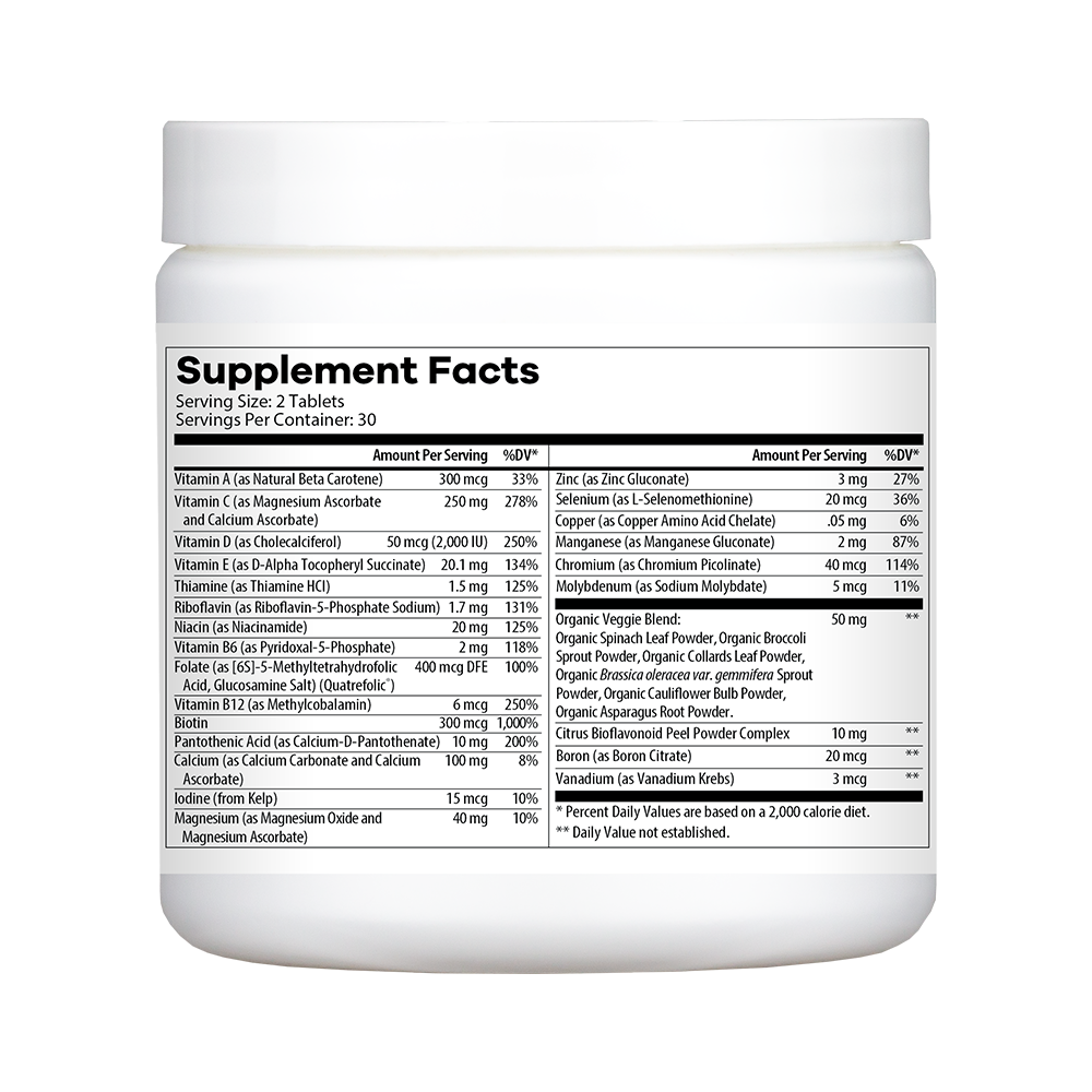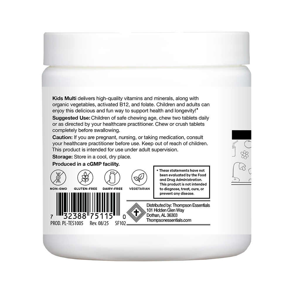 Kids Multi is a comprehensive multivitamin designed specifically for young bodies and minds, delivering a balanced blend of high-quality vitamins, minerals, and organic vegetables in a fun and easy-to-take chewable form. With essential nutrients like Vitamin A, C, D, and E, as well as B-vitamins and an organic veggie blend, it provides the key building blocks for healthy development, immune support, and overall well-being. This supplement is also suitable for adults, making it a convenient choice for the whole family to enjoy optimal health.