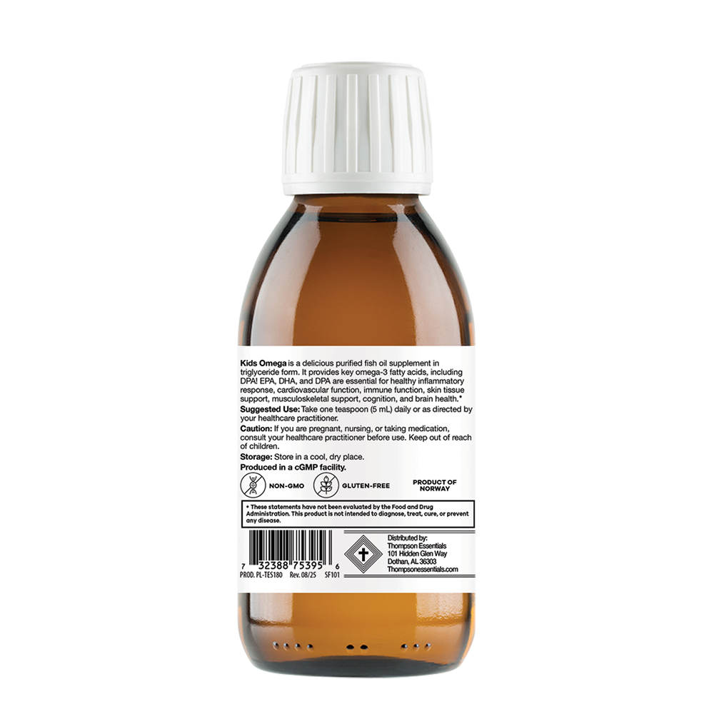 Kids Omega is a delicious, easy-to-swallow purified fish oil supplement formulated for children. Each dose provides three essential omega fatty acids—EPA, DHA, and DPA—that support healthy growth, development, and overall wellness.