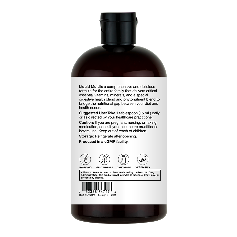 Liquid Multi provides comprehensive immune support for the entire family with research-backed ingredients that promote optimal health and energy. A well-balanced diet can help meet daily nutritional needs, but it can still be difficult to get all the necessary vitamins and minerals from food alone. Liquid Multi contains pharmaceutical-grade, bioavailable vitamins and minerals to help bridge this gap.