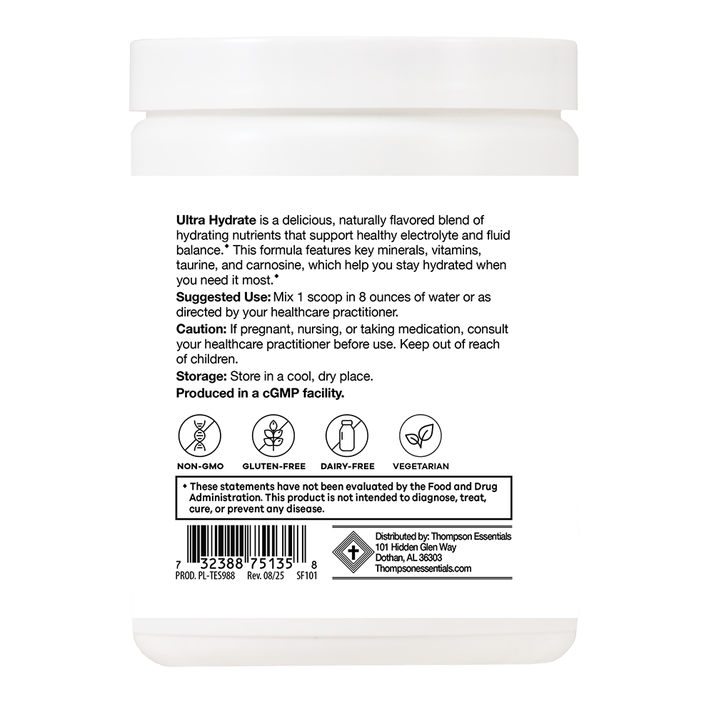 Ultra Hydrate - Grape is a delicious, naturally flavored hydration complex formulated with a balanced profile of key minerals, electrolytes, vitamins, taurine, and carnosine.