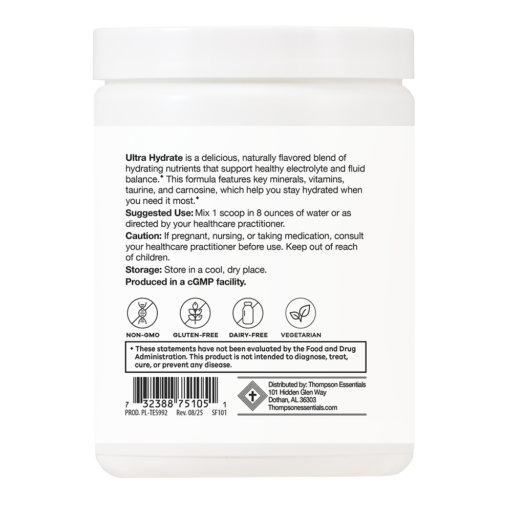 Ultra Hydrate - Lemonade is a delicious, naturally flavored hydration complex formulated with a balanced profile of key minerals, electrolytes, vitamins, taurine, and carnosine.